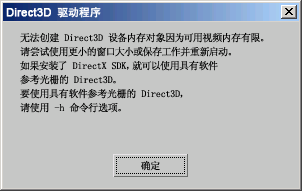 如果配置为“Direct3D”,您或许还会发现此问题和“Direct3D 未能初始化”同时出现。