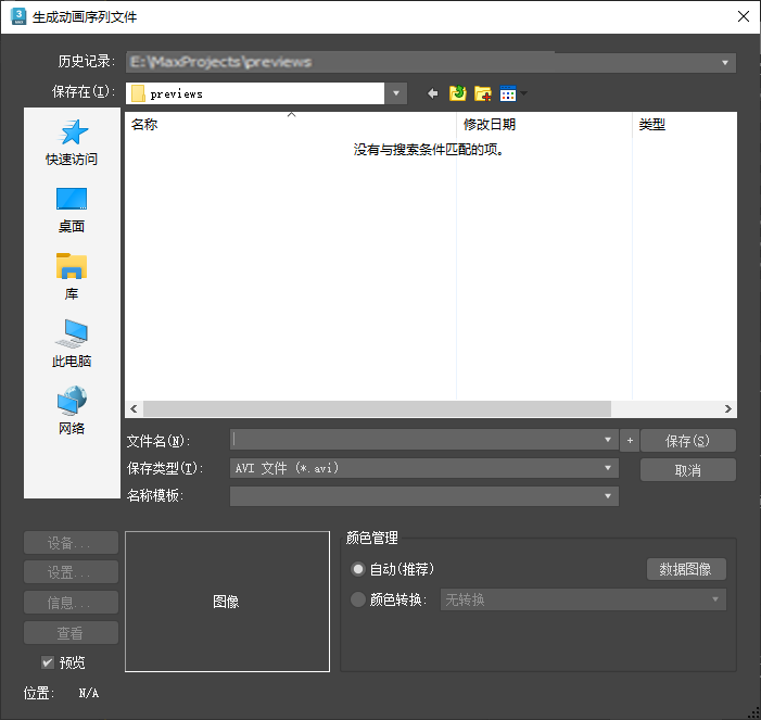 - 可用于选择硬件输出设备,例如,数字视频录制器。设备及其驱动程序以及 3ds Max 插件必须都安装在系统上。