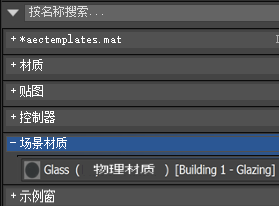 - 再次使用“场景资源管理器”面板选择 Building 1 - Glazing 对象。