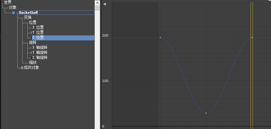 “控制器”窗口(左侧的对象和轨迹的列表)中,单击“Z 位置”轨迹以显示该轨迹的曲线。