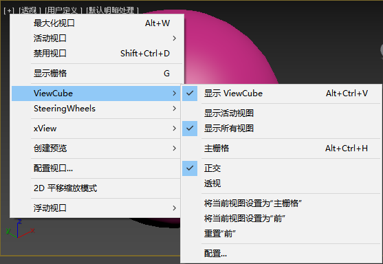 根据 3ds Max 的当前设置,“ViewCube”控件可能会在视口右上角显示。