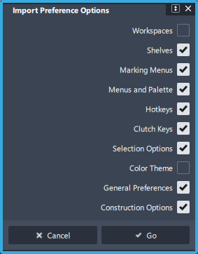 在“Import Preferences Options”窗口中,确保仅选择要导入的首选项。