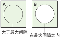 在示例 A 中,两条面上线之间的间隙大于“Max Gap Between Curves”,因此这些曲线不会定义一个区域。