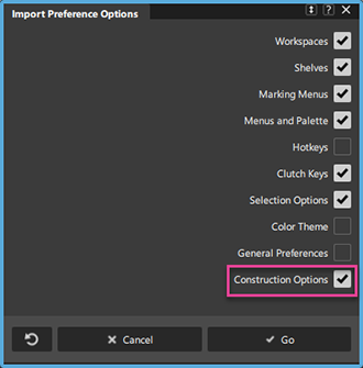 打开“Construction Options”窗口的“Construction Presets”部分。