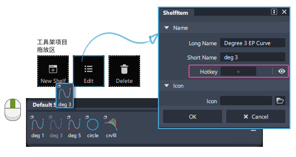 使用“Hotkey Editor”,可以添加和编辑工具箱工具、菜单项和其他功能的快捷键(热键)。