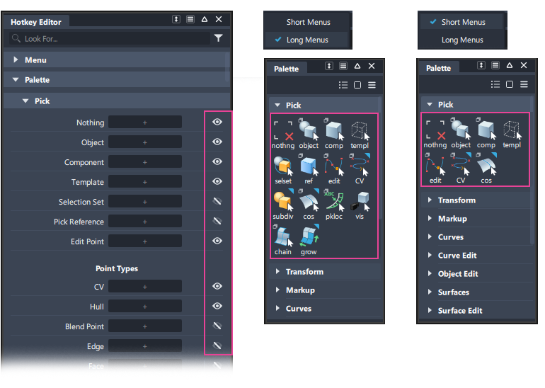 “Marking Menu Editor”中提供了相同的编辑图标。