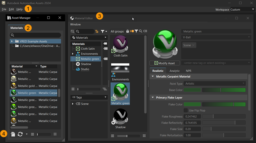 有关材质设置和 Asset Manager 的信息,请参见 VRED 帮助。