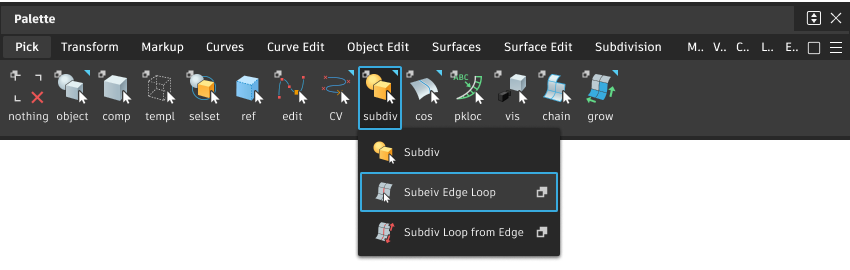 拾取或取消拾取细分循环边。此工具无法选择 NURBS 组件。