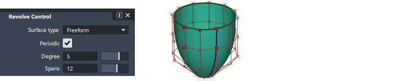 如果仅选择了一个跨距,则选择“Freeform”(而不是“Periodic”)将创建“开放”的旋转形状,如果选择了多个跨距,则创建一组相邻曲面。