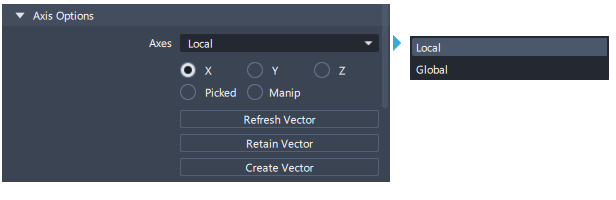 Retain Vector - 将选定的 X、Y、Z 或视图方向转换为场景中的独立向量。工具窗口将变为“Picked”,投影方向现在由创建的向量控制。
