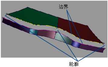 第一组边界以绿色亮显,第二组边界以黄色亮显。
