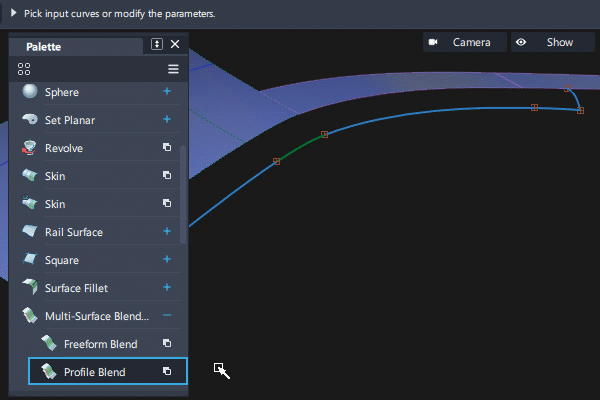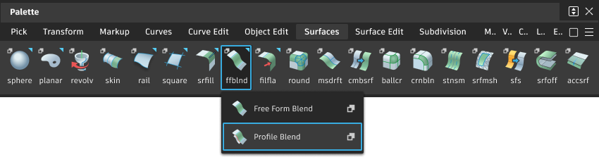“Profile Blend”的工作方式与“Freeform Blend”相同,但是使用所添加的曲线来定义轮廓形状。它的作用与“Rail”工具类似,但: