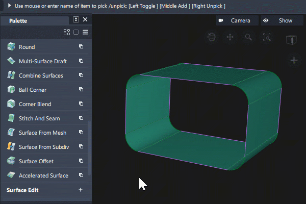 Shift 键并单击曲面或使用拾取框,选择其他曲面(或取消选择它们)。