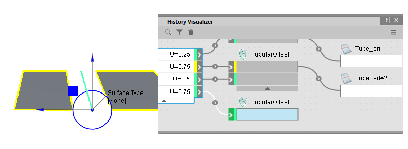 如果输入曲面没有历史,并且只有一个管状偏移修剪,则选择该曲面并单击一次“Tubular Offset”工具图标,控制窗口将重新打开。