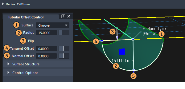 “Tubular Offset”包含以下曲面工具常用参数部分: