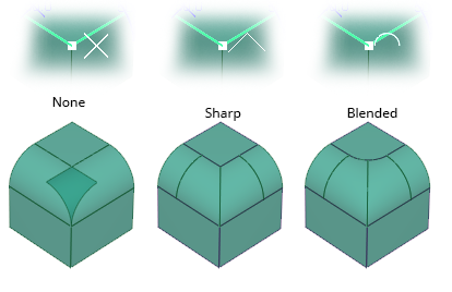 禁用后,不会生成倒角,并且忽略其下四个设置。如果要自己构造倒角(例如,使用“Corner Blend”工具),请使用此选项。