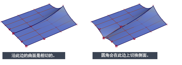 如果相交于边的曲面在任意点处彼此相切,或者圆化操作将切换侧面,则无法形成圆角。