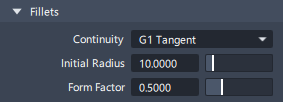 G1 Tangent - 创建与输入曲面具有切线连续性的圆角,并可选择使用“Form Factor”设置修改轮廓形状。