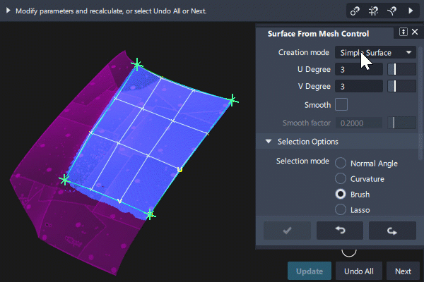 更改“Surface From Mesh Control”窗口中的值时自动更新曲面。