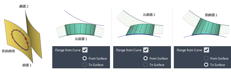 选择“Flange from Curve”将允许改用自由曲线,法线方向通过选择曲面来确定,选项包括: