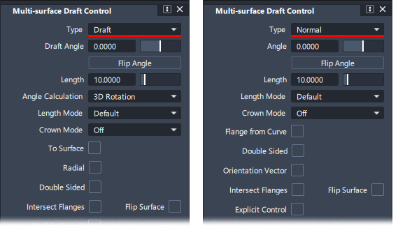 “Multi-Surface Draft”包含以下曲面工具常用参数部分: