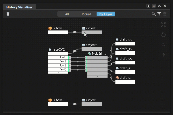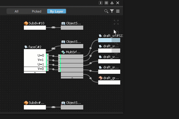 此外,视图过滤按钮“All”、“Picked”和“By Layer”现在看起来与其他 Alias 编辑器中的类似功能相同。