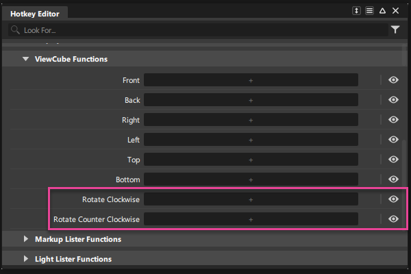 我们添加了为 ViewCube 旋转指定热键的功能。在“Hotkey Editor”中,查看“Special”下的 ViewCube 功能。在这里可以为顺时针旋转和逆时针旋转指定热键。