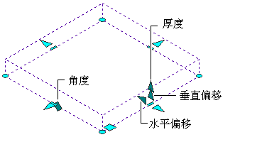 屋顶板“角度”、“厚度”、“水平偏移”和“垂直偏移”夹点