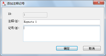 将显示“注释记号特性”对话框,其中有一个只读的 ID 字段显示了正在编辑的注释记号的数据库标识符。