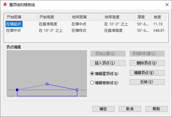 - 添加、移动或删除墙的屋顶线或楼板线中的顶点。
