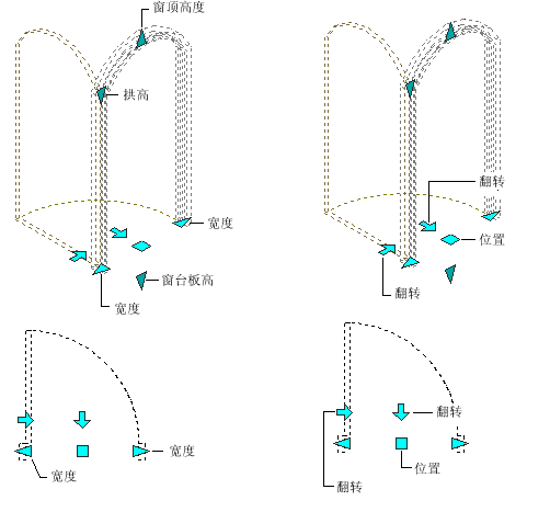 拱高 拱高应用于“五角形”、“拱形”和“哥特式”门造型。 |