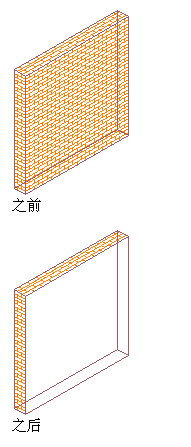 | 只替代选定的对象面 | 选择“仅选定的 <方向> 向面”。例如,若要将曲面图案填充替代应用于选定的墙“前”面,请选择“仅选定的前向面”。 |
