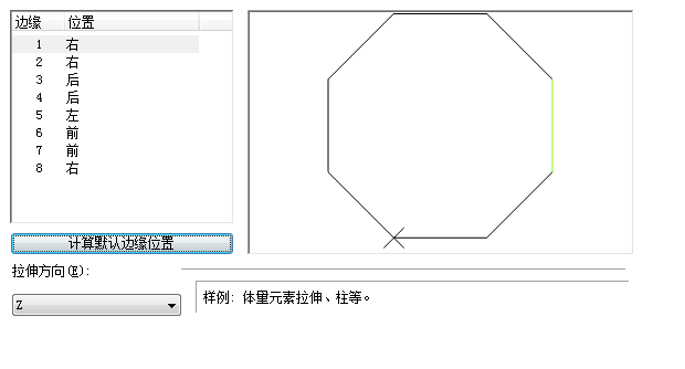 创建轮廓时,所有边缘都被标记为沿 Z 方向拉伸。这些边缘位置都是根据边缘中点所在的象限点来计算的。可以在轮廓定义中,修改边缘的观察方向与拉伸方向。