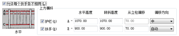 | 指定护栏或扶手的高度 | 输入“水平高度”值。 |