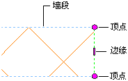 可以使用在位编辑夹点修改墙收头,以及创建所需的墙收头条件。将为指定墙收头上的所有墙构件显示顶点和边缘夹点。