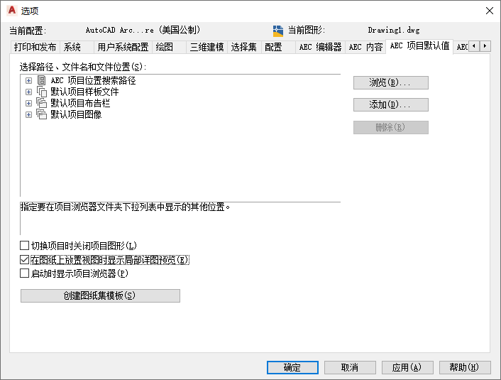 执行以下步骤可以指定软件在其中搜索项目、选项板、样板和其他项目文件的默认文件夹。