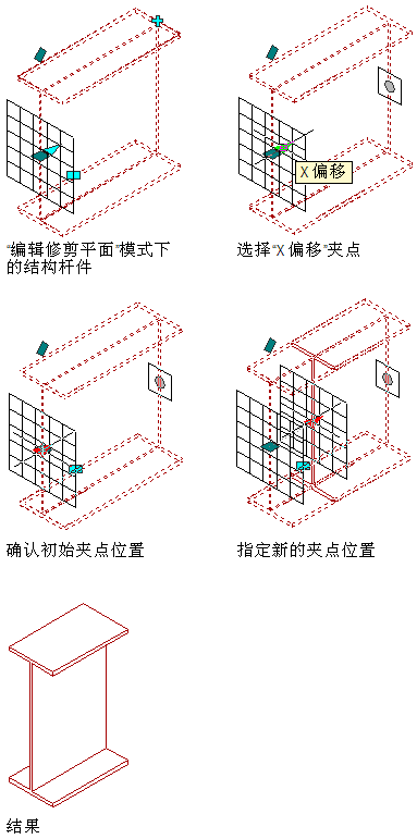 | 沿杆件的拉伸轴在 X 方向上偏移修剪平面 | 在“偏移”中输入 X 值。 |
