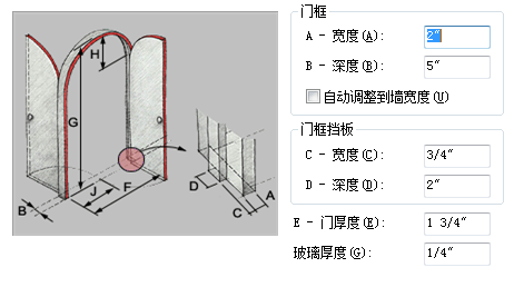 在“门框挡板”下,输入“宽度”和“深度”值。