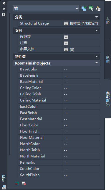 可以使用“选项”对话框的“AEC 对象设置”选项卡上的 “特性替代”下拉菜单选项来控制特性集定义在“扩展数据”选项卡中的列出。