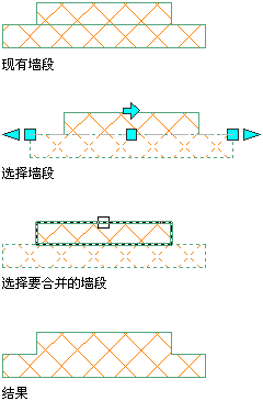 使用以下步骤可以合并选定墙的轮廓。此操作虽然不提供自动墙清除功能,但是在短墙段密集的位置,合并墙非常有用。