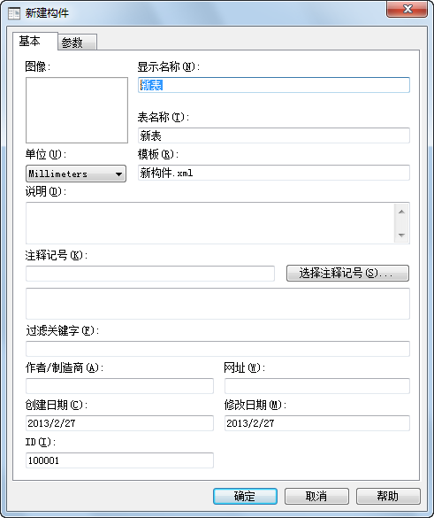 | 注释记号 | 单击“选择注释记号”,浏览到或者创建一个注释记号,作为该构件的默认注释记号。 |