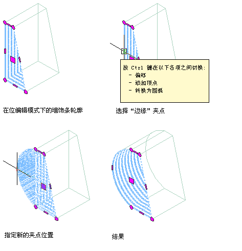 将顶点添加到在位编辑墙饰条轮廓边缘的步骤