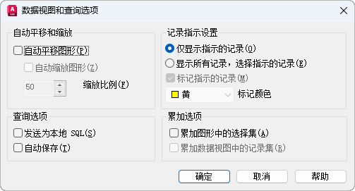 控制在“数据视图”窗口中选择记录时,对应的链接对象在当前图形中的显示方式。