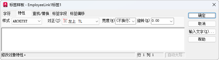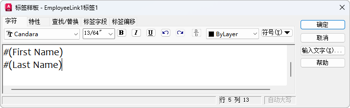 将文字样式应用于标签。当前样式保存在 TEXTSTYLE 系统变量中。如果将新样式应用于现有标签样板,则将替代字体、高度以及粗体或斜体属性的字符格式。堆叠、下划线和颜色属性将保留在应用新样式的字符中。将不会应用具有反向或倒置效果的样式。如果将定义了垂直效果的样式应用于 SHX 字体,则文字将在“标签样板”对话框中水平显示。