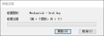 “恢复进度”消息框即会显示,并会通知您附着到图形的外部参照文件的核查进度。