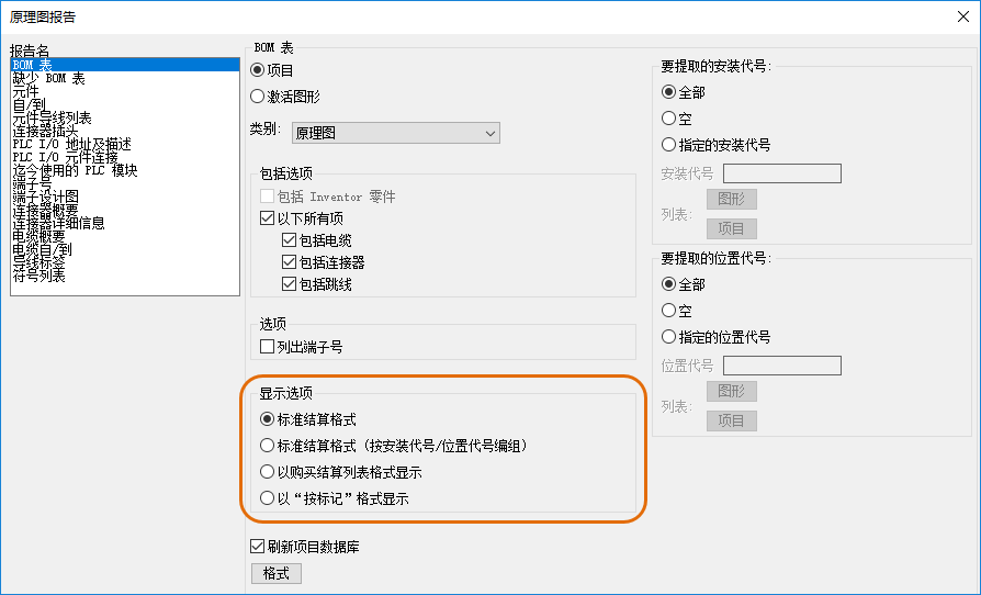 - 在“原理图报告”对话框中,从报告列表中选择“BOM 表”。