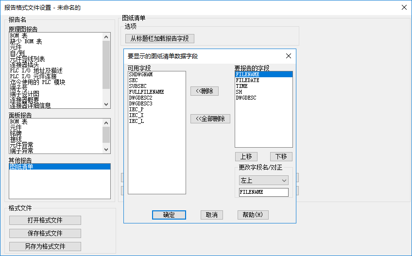 - 在“报告格式文件设置”对话框中,单击“更改报告字段”以指定报告字段。