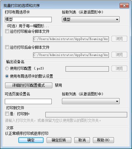 确保为选定图形选择要打印的布局。如果已定义页面设置,请输入其名称。