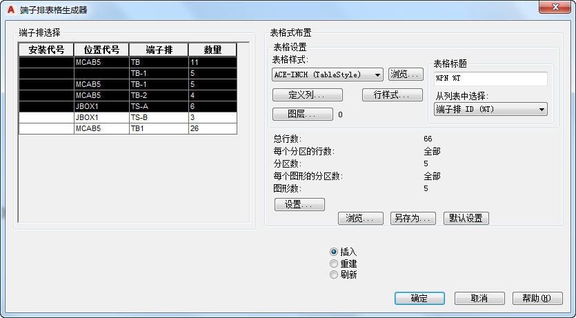 如果要为一个或多个端子排插入表格格式端子排,还可以使用端子排表格生成器。 查找