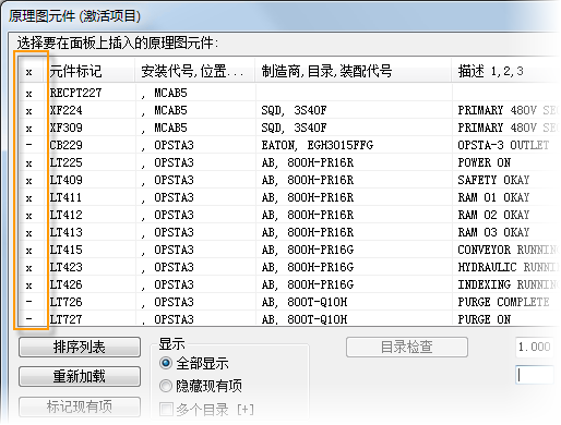 该对话框指示哪些原理图元件已插入到面板布局中。